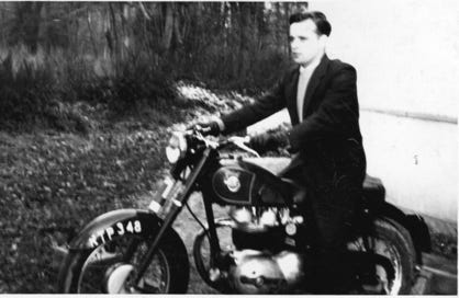 We are sorry that neither Michael nor I are able to add further details but I think that Jock may have dressed up for a special occasion even though I know that he never had a motorbike!!!!! You will notice that the gear he was wearing appeared to dwarf him, no doubt you will agree. I know that he wore glasses being very short sighted.